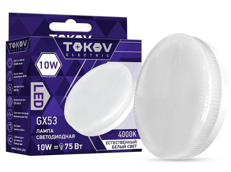 Лампа светодиодная 10Вт Tablet 4000К GX53 176-264В TOKOV ELECTRIC TKE-GX53-10-4K