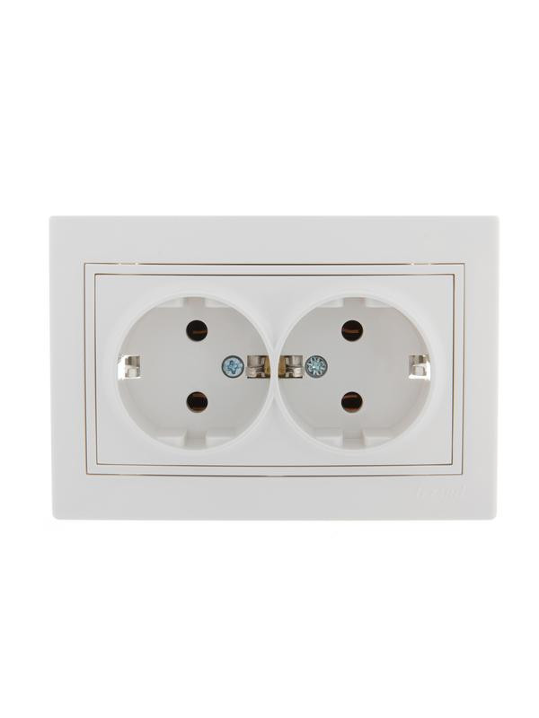 Розетка 2-м СП Mira 16А IP20 с заземл. с бел. вставкой керамика бел. LEZARD 701-0202-127 LEZARD