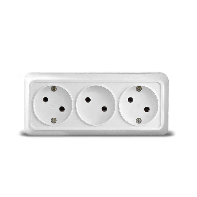 Розетка 3-м ОП Олимп 16А IP20 без заземл. бел. UNIVersal 1160 Universal