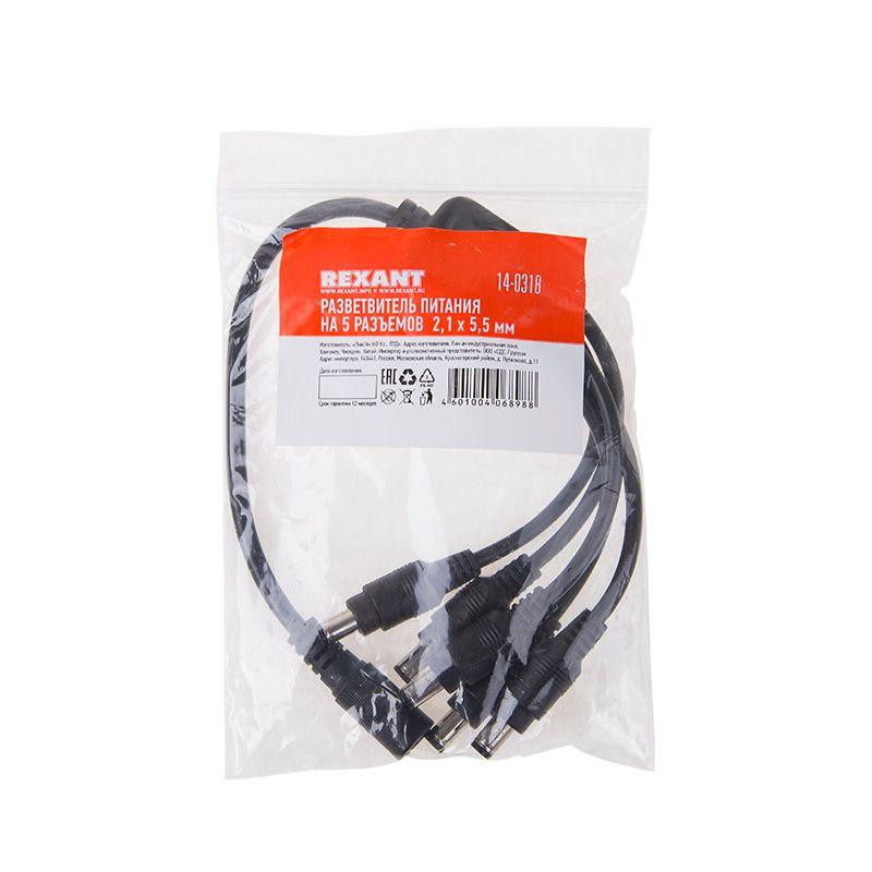 Разветвитель питания 5 разъемов 0.5А IP23 2.1х5.5мм Rexant 14-0318 Rexant