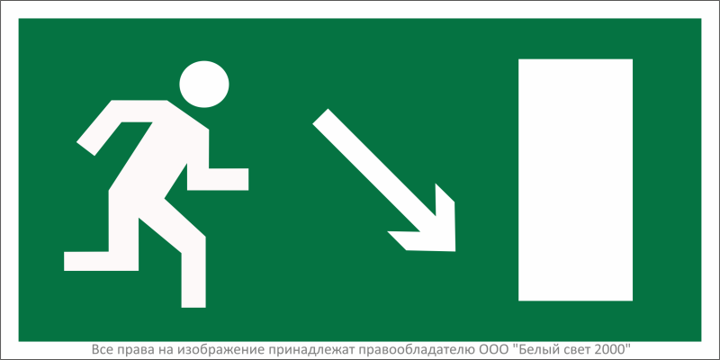 Знак безопасности BL-3015B.E07 "Напр. к эвакуационному выходу направо вниз" Белый свет a14585
