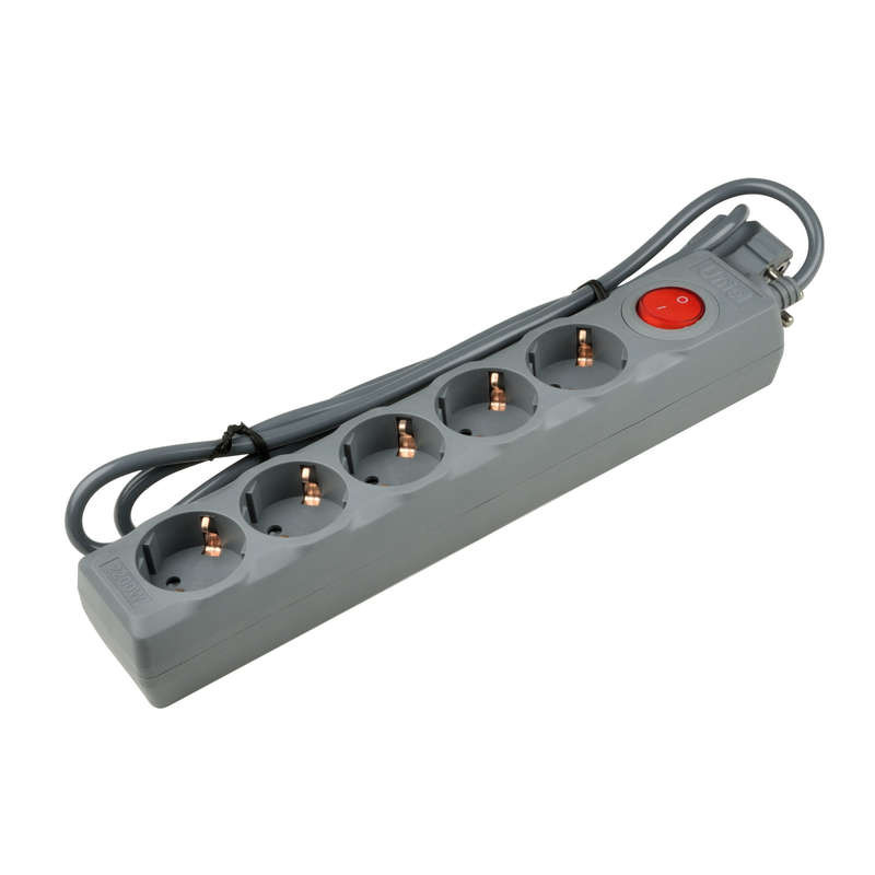 Удлинитель с сетевым фильтром 5х1.5м с заземл. 10А Universal SGSU5-1.5 GREY ПВС 3х0.75 защита от перенапряж. короткого замыкания Uniel UL-00001743 Uniel