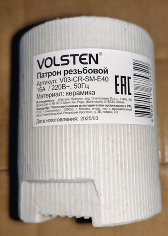 Патрон резьбовой В03-CR-SM-E40 (керамика под лампу E40/220В/4А) Volsten 12230