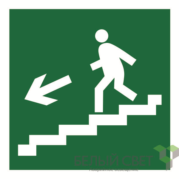 Знак безопасности BL-1515.E14 "Напр. к эвакуац. выходу по лестн. вниз (лев)" Белый свет a14604