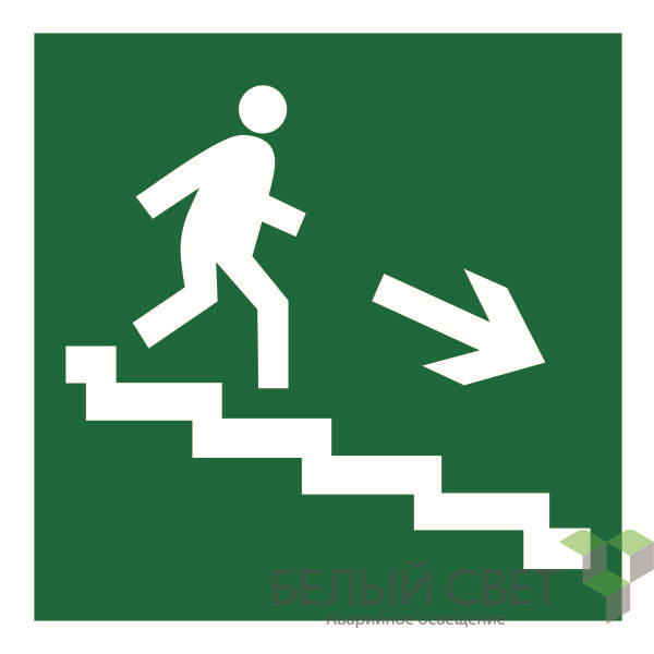 Знак безопасности BL-1515.E13 "Напр. к эвакуац. выходу по лестн. вниз (прав)" Белый свет a14603