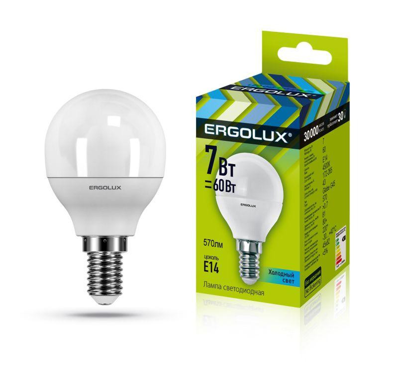 Лампа светодиодная LED-G45-7W-E14-4500K 172-265В "Шар" Ergolux 12144 Ergolux