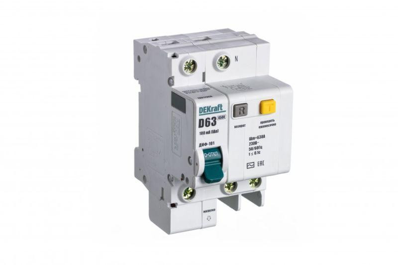 Выключатель автоматический дифференциального тока 2п (1P+N) D 63А 100мА тип AC ДИФ-101 со встроен. защит. от сверхтоков DEKraft 15217DEK