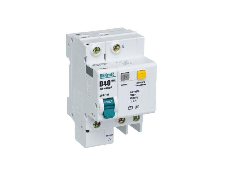 Выключатель автоматический дифференциального тока 2п (1P+N) D 40А 100мА тип AC ДИФ-101 со встроен. защит. от сверхтоков DEKraft 15215DEK