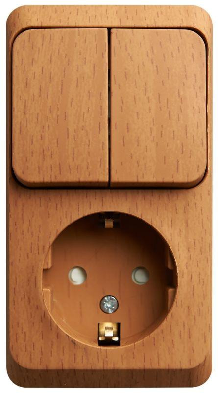 Блок ОП Этюд (1-м розетка без заземл. + 2-кл. выкл.) бук SE BPA16-205T