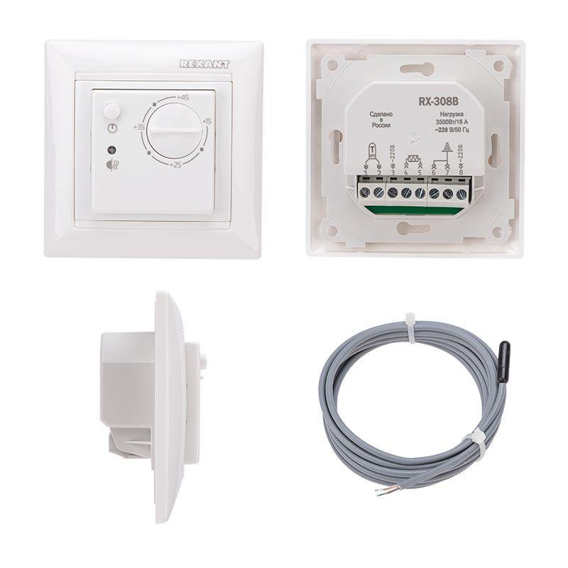 Терморегулятор мех. RX-308B датчик пола. 3.6кВт 16А бел. REXANT 51-0562 Rexant