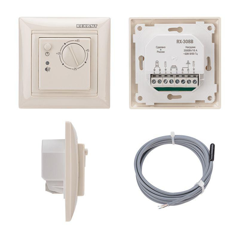 Терморегулятор мех. RX-308B датчик пола. 3.6кВт 16А беж. REXANT 51-0563 Rexant