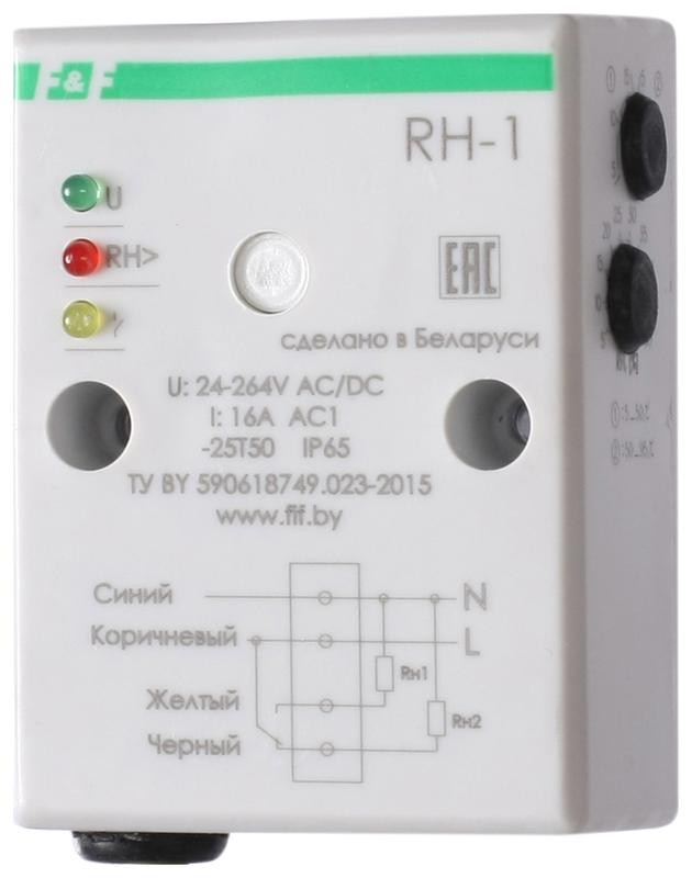 Реле контроля влажности RH-1 (четырехфункциональный встроен. датчик монтаж на плоскость) 230В 16А 1NO/NC IP20 F&F EA07.003.001 Евроавтоматика F&F