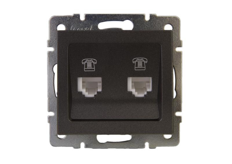 Розетка телефонная 2-м Rain RJ11 евро стандарт механизм матов. черн. графит LEZARD 703-4188-138 LEZARD