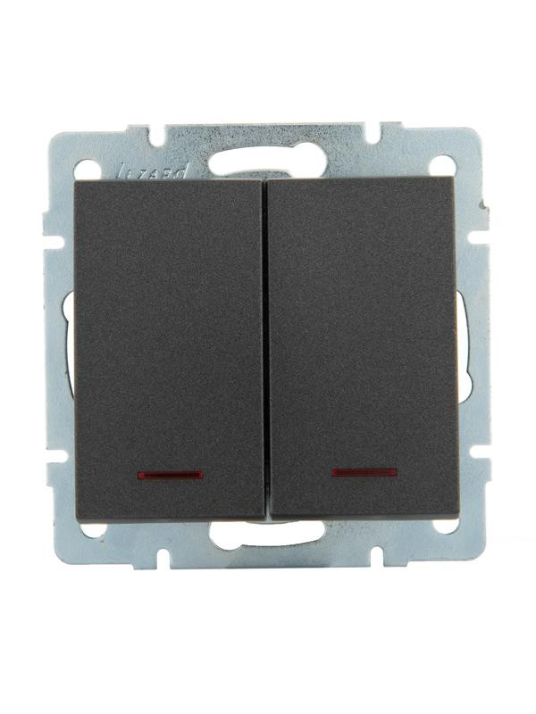 Выключатель 2-кл. Rain с подсветкой механизм матов. черн. графит LEZARD 703-4188-112 LEZARD