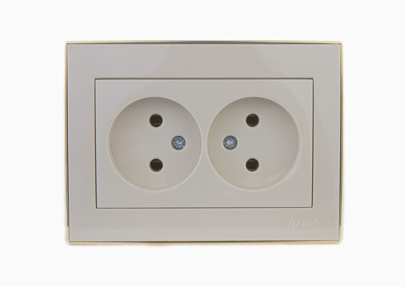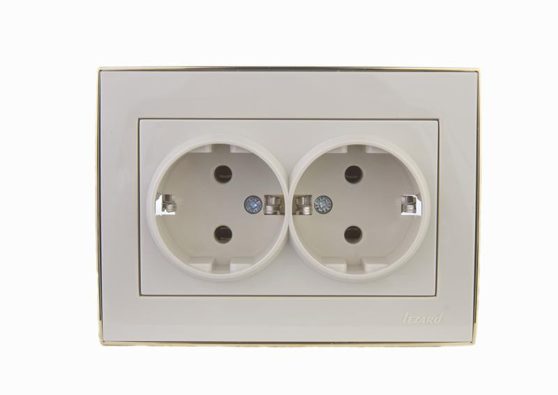 Розетка 2-м Rain без заземл. с зол. боковой вставкой керамика крем. LEZARD 703-0326-128 LEZARD