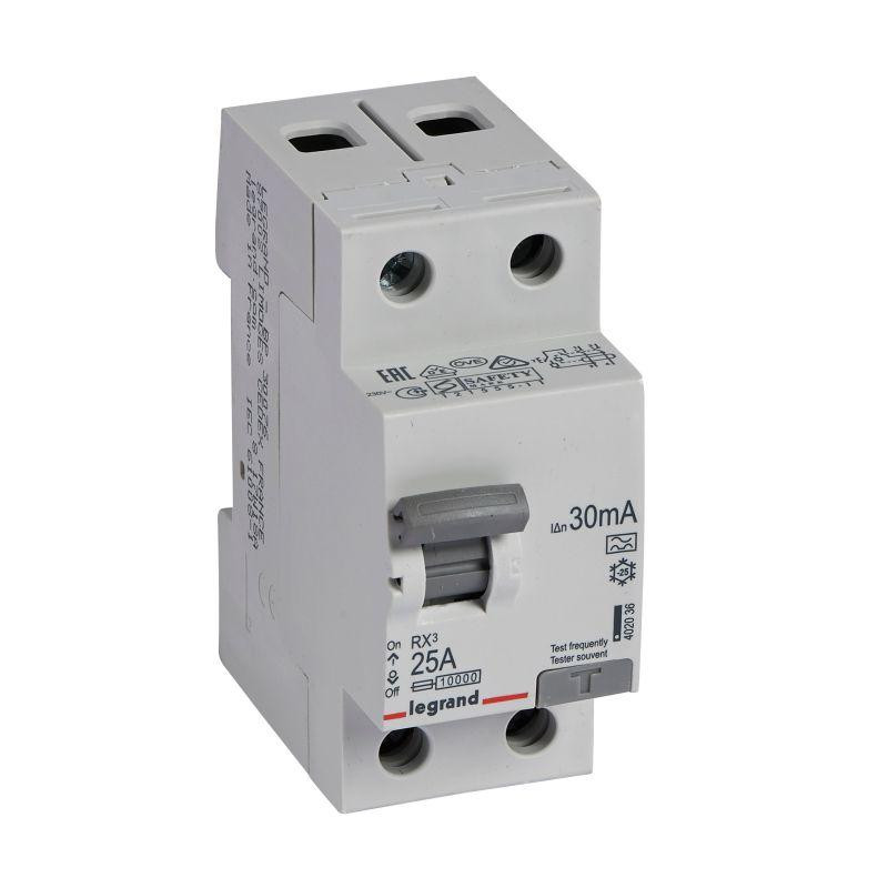 Выключатель дифференциального тока (УЗО) 2п 25А 30мА тип A RX3 ИЭК Leg 402036 Legrand