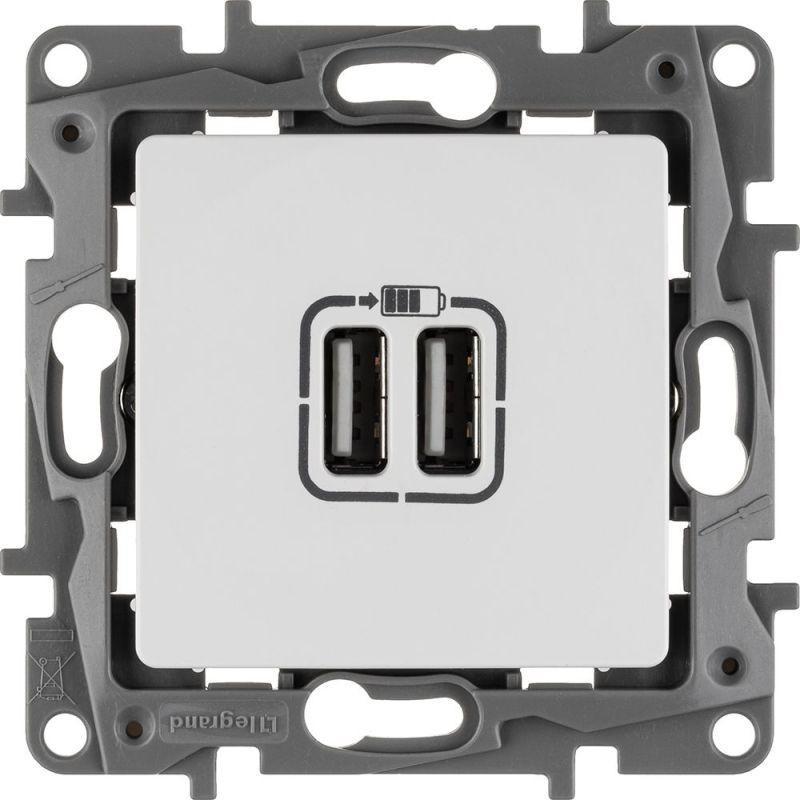 Розетка USB 2-м СП 2мод. Etika 240В/5В 2400мА механизм бел. IEK 672294