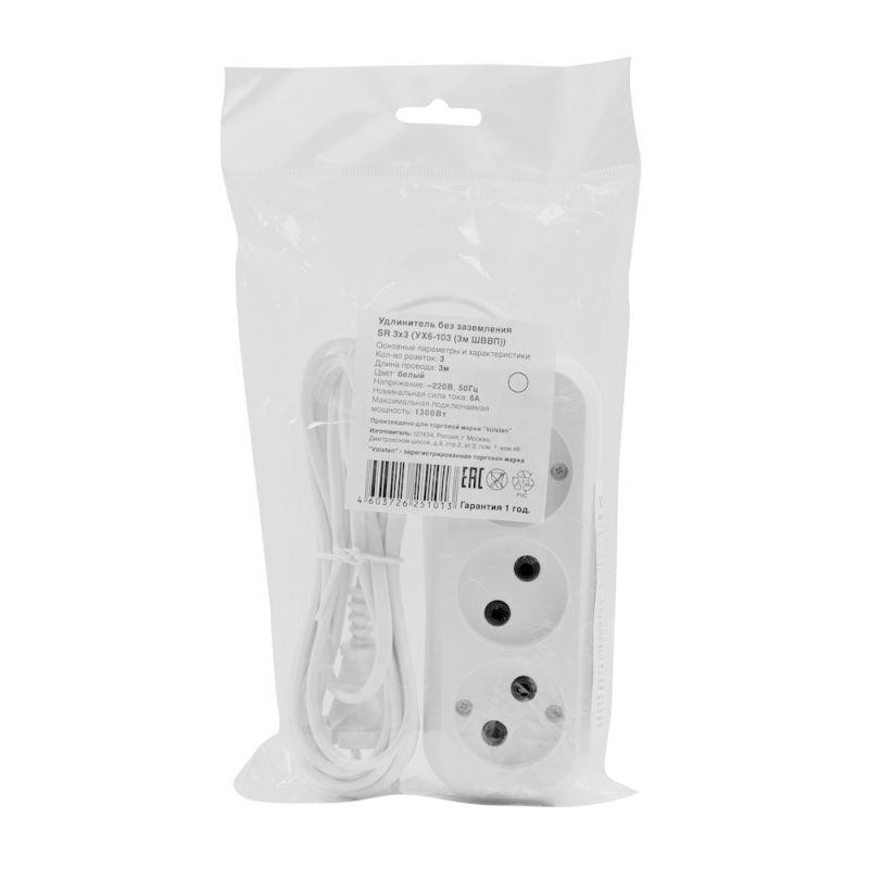 Удлинитель 3х3м без заземл. 6А IP20 SR УХ6-103 1.3кВт ШВВП Volsten 12422