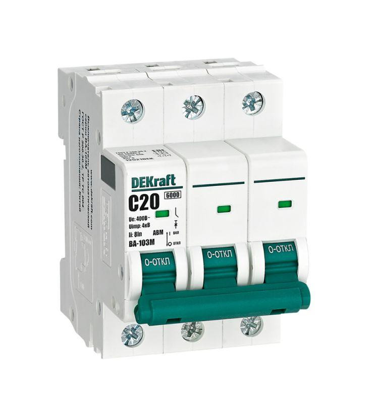 Выключатель автоматический модульный 3п C 20А 6кА ВА-103M без теплозащиты DEKraft 12521DEK