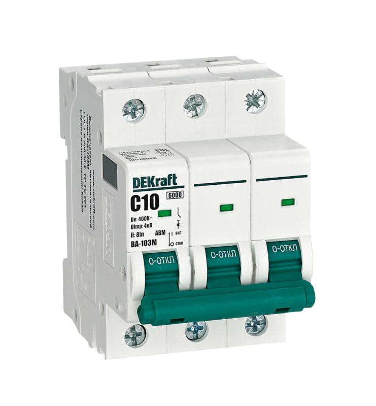 Выключатель автоматический модульный 3п C 10А 6кА ВА-103M без теплозащиты DEKraft 12519DEK