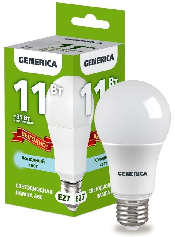 Лампа светодиодная A60 11Вт грушевидная 6500К E27 230В промо GENERICA LL-A60-11-230-65-E27-G