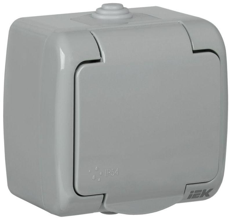 Розетка 1-м ОП Aquatic РСш12-2-А 16А IP54 с заземл. с крышкой сер. IEK ERA12-K03-16-54 IEK