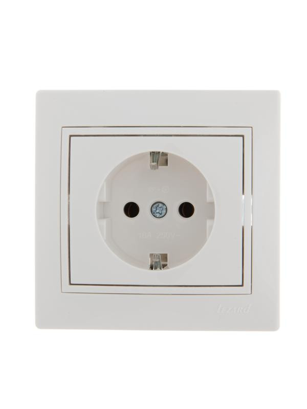 Розетка 1-м СП Mira 16А IP20 с заземл. с бел. вставкой керамика бел. LEZARD 701-0202-122 LEZARD