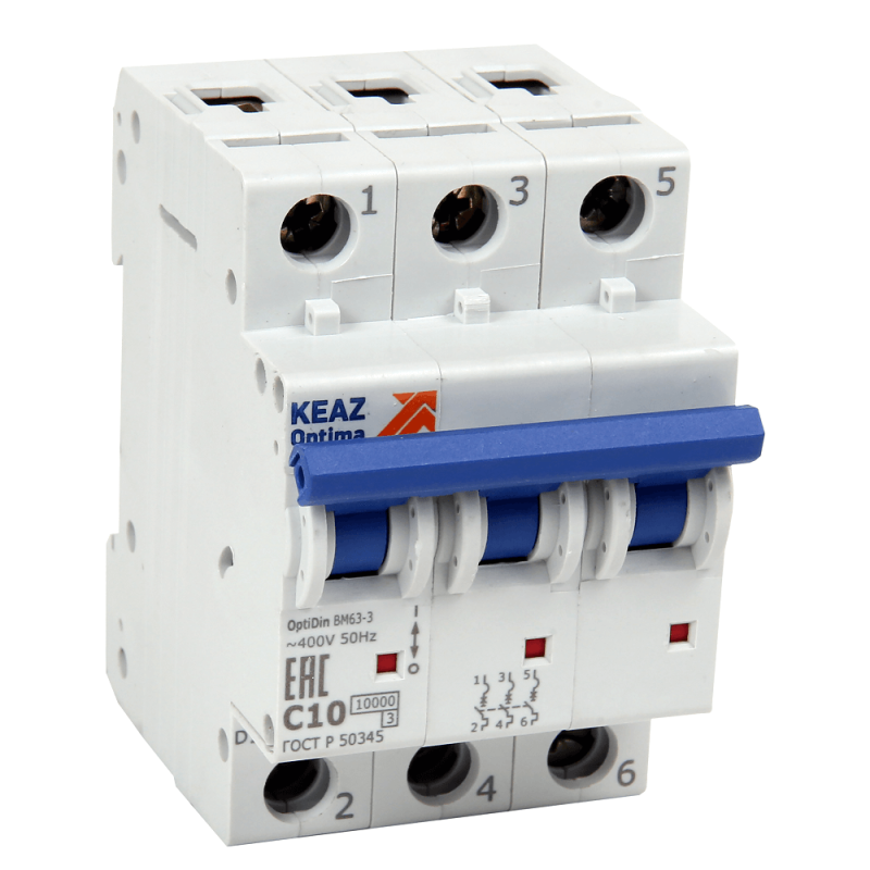 Выключатель автоматический модульный 3п B 10А 10кА OptiDin BM63-3B10-10-УХЛ3 КЭАЗ 262759 КЭАЗ