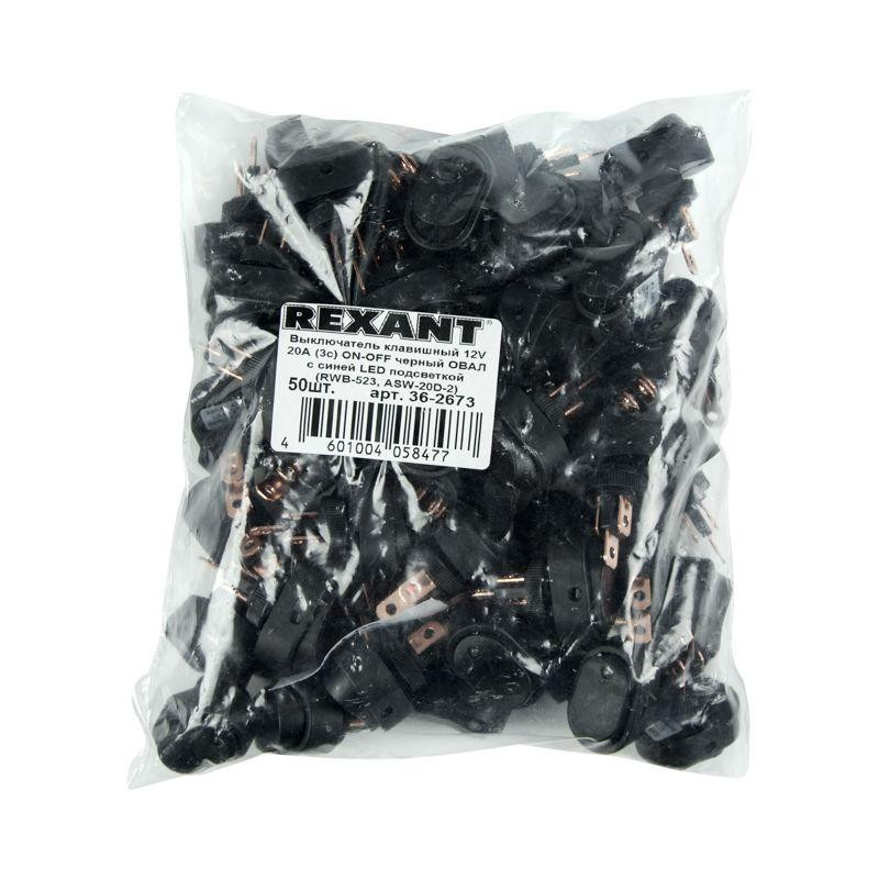 Выключатель клавишный 12В 30А (3с) ON-OFF черн. ОВАЛ LED подсветка син. (RWB-523 ASW-20D) Rexant 36-2671 Rexant
