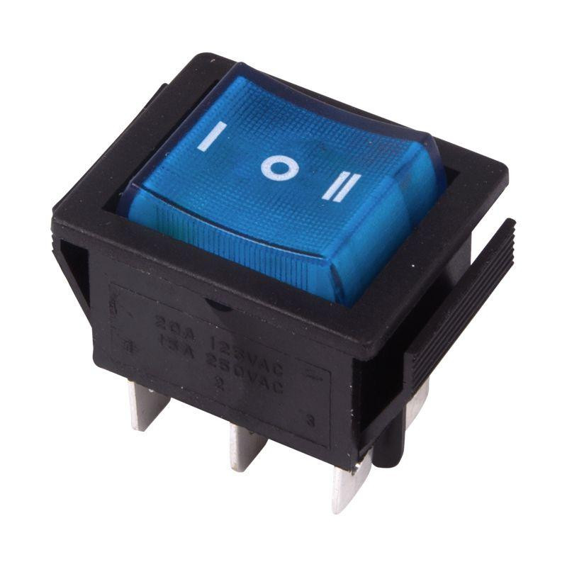Выключатель клавишный 250В 15А (6с) ON-OFF-ON син. с подсветкой и нейтралью (RWB-509 SC-767) Rexant 36-2391 Rexant