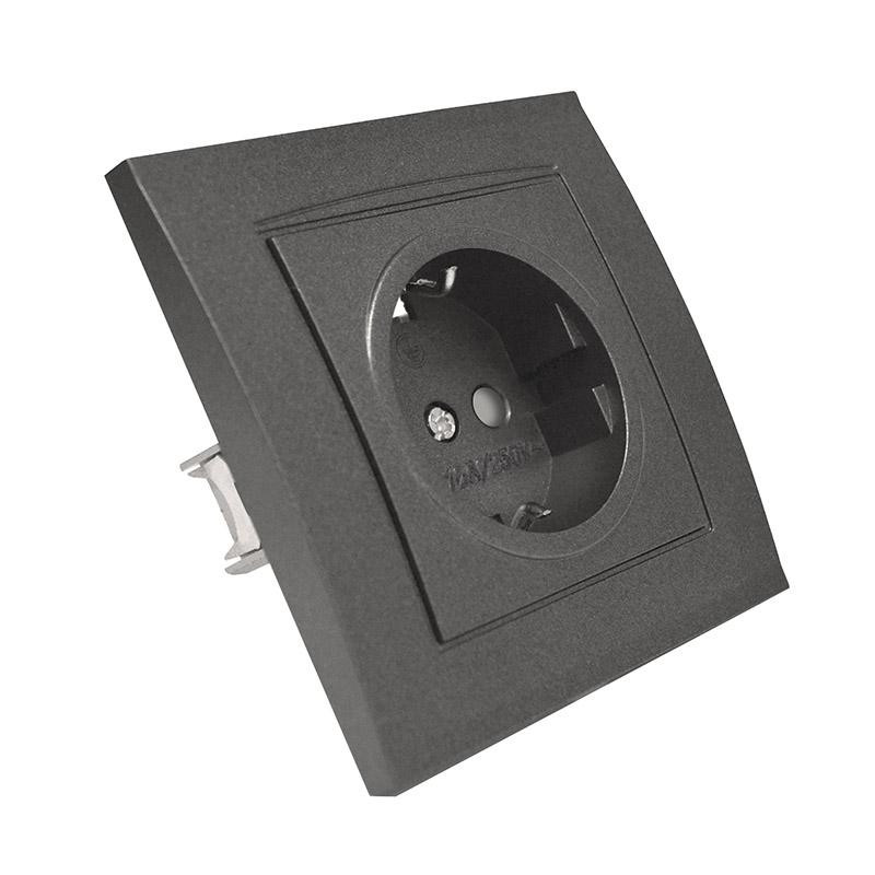 Розетка 1-м СП Бриллиант 16А IP20 с заземл. защ. шторки в сборе графит Universal 7947632-Gr Universal