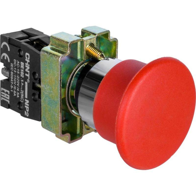 Кнопка управления "Грибок" NP2-BC42 d40мм (2) 1НЗ IP40 с самовозвратом без подсветки красн. CHINT 574846