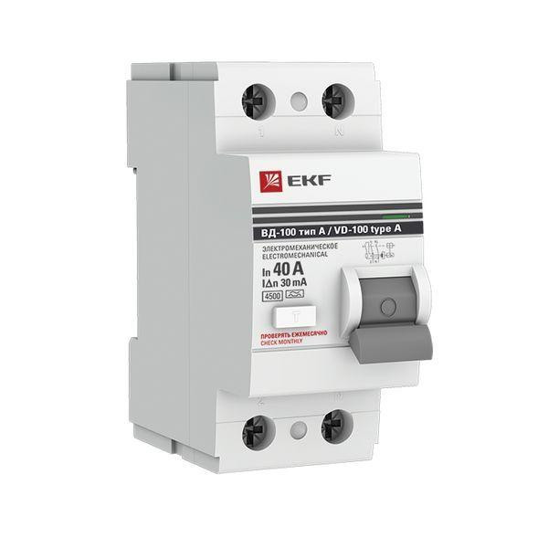 Выключатель дифференциального тока (УЗО) 2п 40А 30мА тип A ВД-100 (электромех.) PROxima EKF elcb-2-40-30-em-a-pro EKF