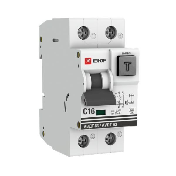 Выключатель автоматический дифференциального тока 16А 30мА тип AC 6кА АВДТ-63 электромех. PROxima EKF DA63-16-30-AC EKF