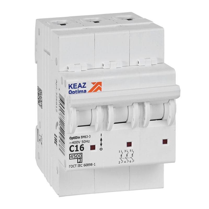 Выключатель автоматический модульный OptiDin BM63-3C16-4.5-УХЛ3 КЭАЗ 326812 КЭАЗ