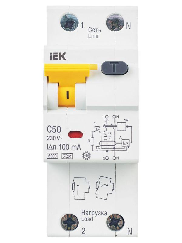 Выключатель автоматический дифференциального тока 2п (1P+N) C 50А 100мА тип A 6кА АВДТ-32 KARAT IEK MAD22-5-050-C-100 IEK