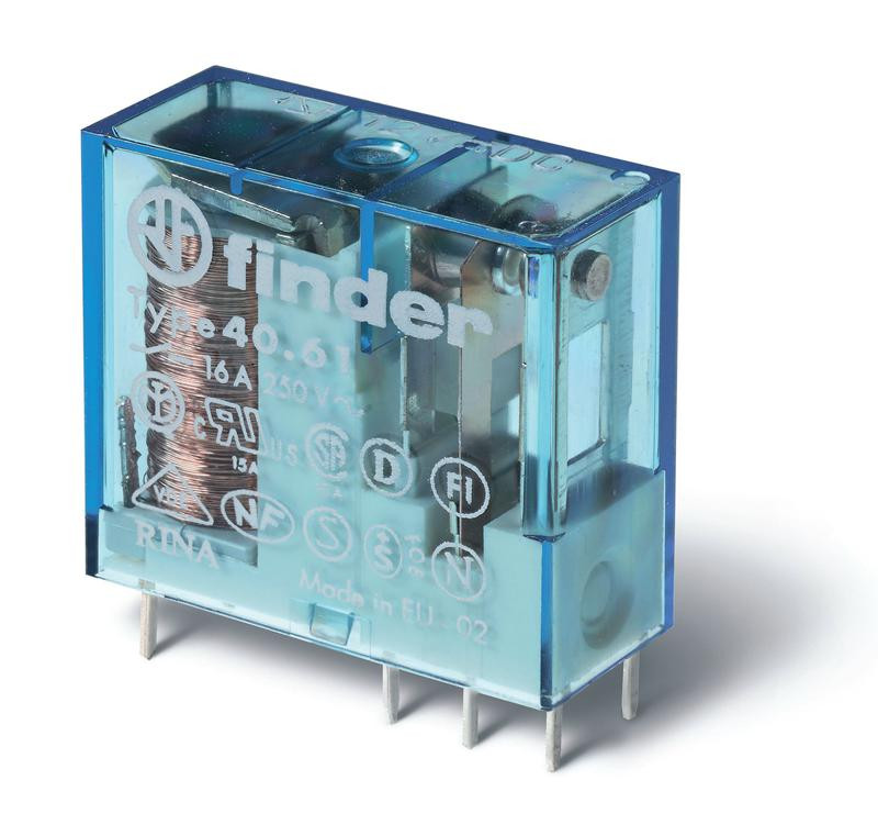 Реле миниатюрное универсальное электромеханич. монтаж на печатную плату выводы с шагом 5мм 1CO 16А AgCdO 12В DC (чувствит.) RTII FINDER 406170122020 FINDER