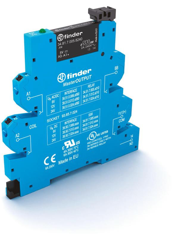 Модуль интерфейсный (сборка 34.81.7.024.9024 + 93.65.7.024) твердотельное реле MasterOUTPUT выход 6А (24В DC) 24В DC IP20 безвинт. клеммы Push-in FINDER 395070249024 FINDER