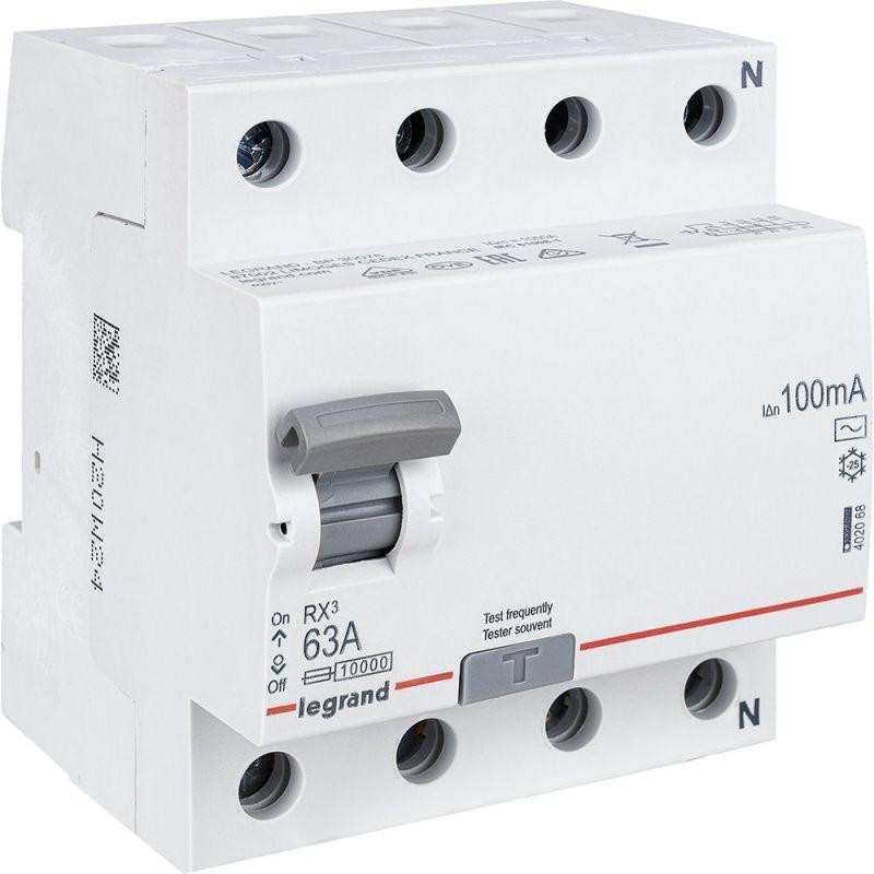 Выключатель дифференциального тока (УЗО) 4п 63А 100мА тип AC RX3 ИЭК Leg 402068 Legrand