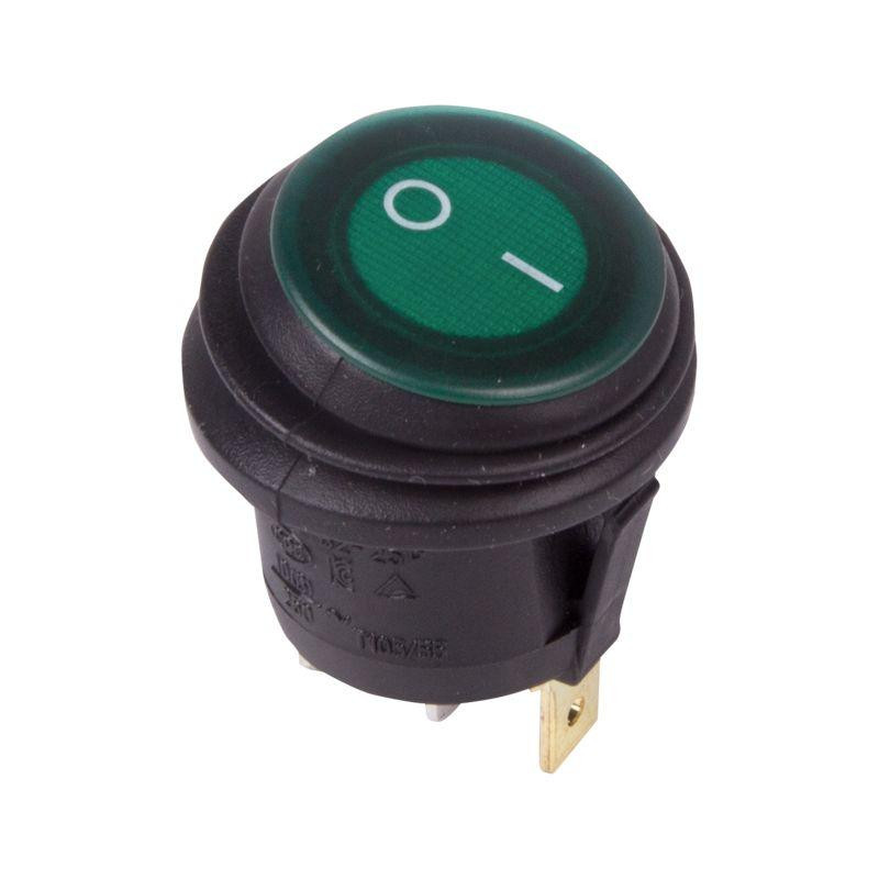 Выключатель клавишный круглый 250В 6А (3c) ON-OFF зел. с подсветкой ВЛАГОЗАЩИТА Rexant 36-2597 Rexant