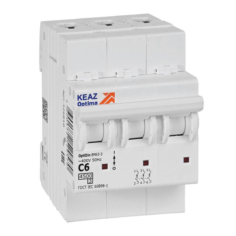 Выключатель автоматический модульный OptiDin BM63-3C6-4.5-УХЛ3 КЭАЗ 326810 КЭАЗ