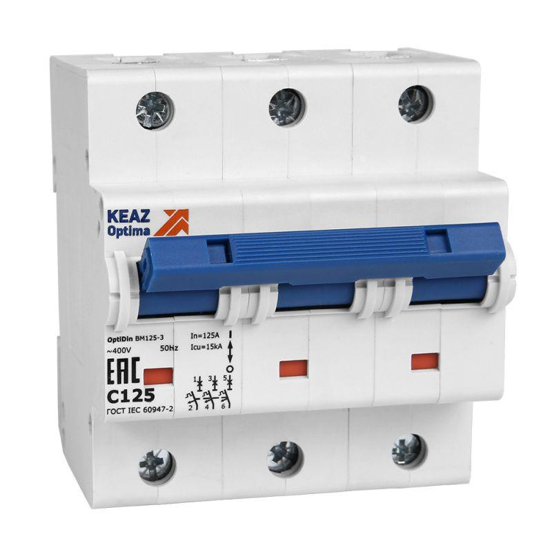 Выключатель автоматический модульный 3п C 80А 20кА OptiDin BM125-3C80-8ln-УХЛ3 КЭАЗ 138543 КЭАЗ