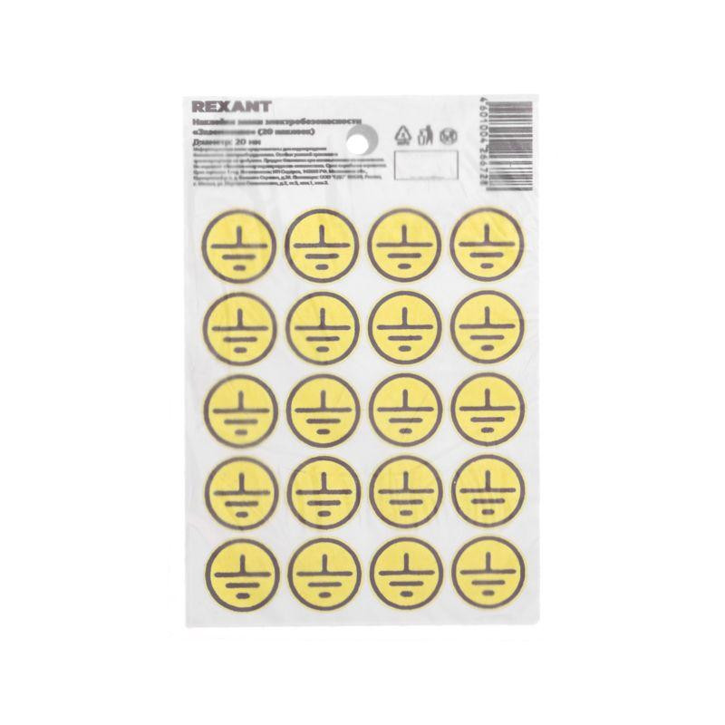 Наклейка знак электробезопасности «Заземление» d20мм (с хедером 20шт на листе) Rexant 56-0010-01 Rexant