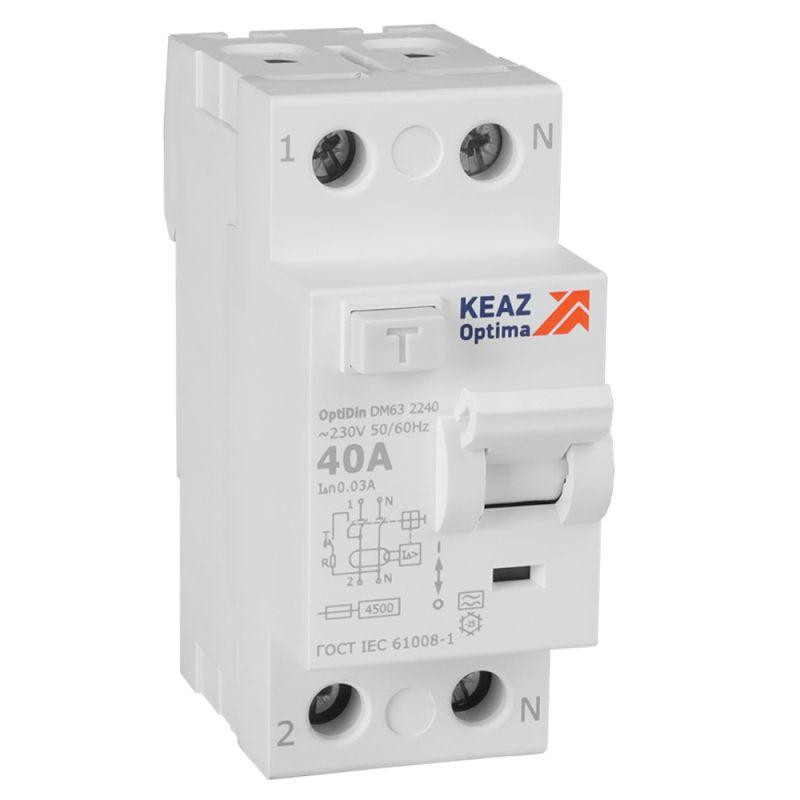 Выключатель дифференциального тока (УЗО) 2п 40А 30мА тип A 4.5кА OptiDin DM63-2240 УХЛ4 КЭАЗ 343913 КЭАЗ