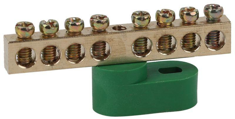 Шина PE "земля" на одном угловом изоляторе ШНИ-6х9-8-У1 зел. NO-222-103-1 ЭРА Б0044152 Эра