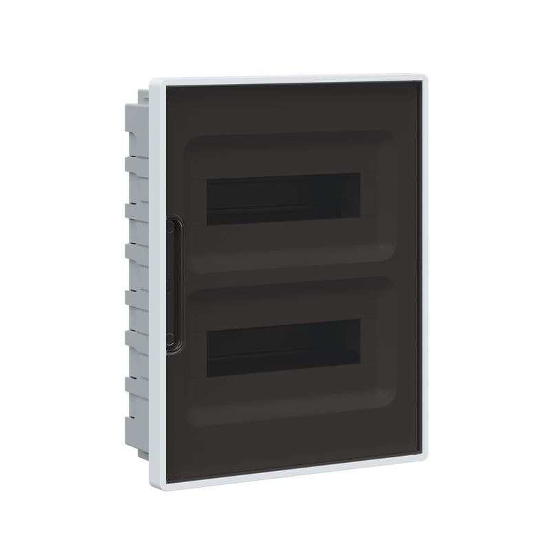 Щиток 24 мод встраиваемый для полых стен FRAME с тонированной дверцей с 4 шинами PEN (2шт на 8 отв. и 2шт на 6 отв.) бел. DKC F24B3WD DKC