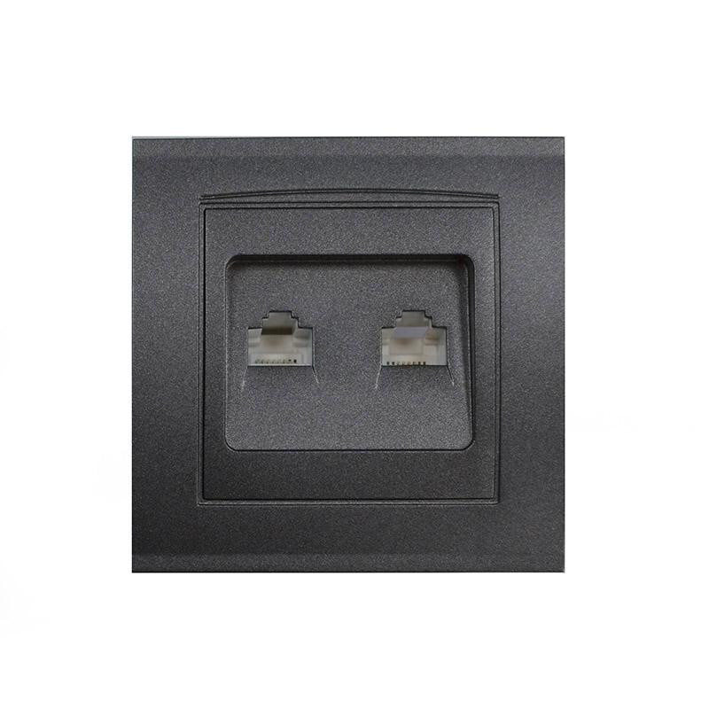 Розетка компьютерная + телефонная 2-м СП Бриллиант в сборе графит Universal 7947618-Gr Universal