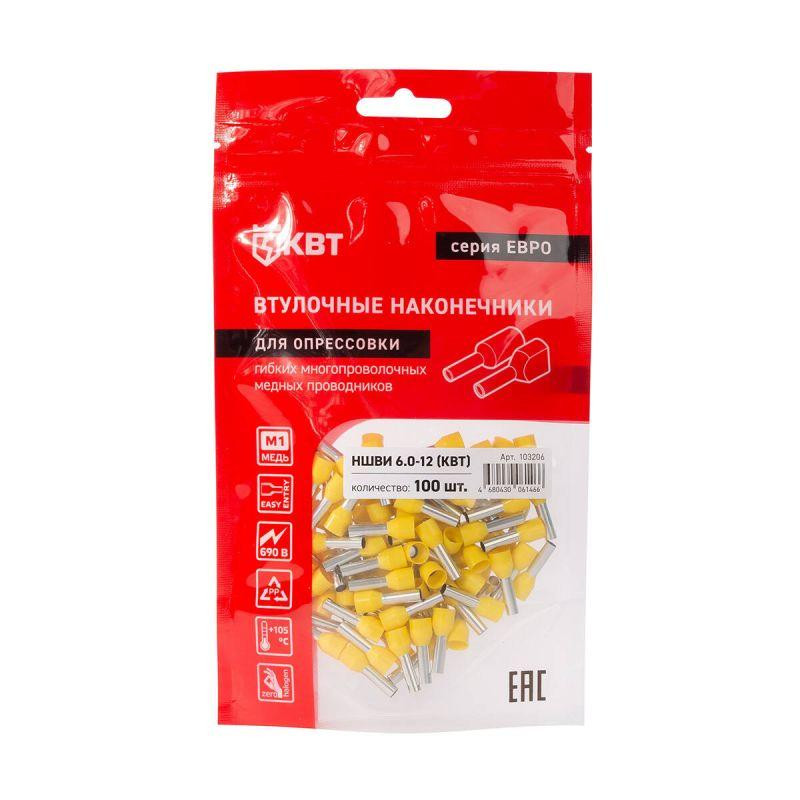 Наконечник штыревой втулочный изолированный НШВИ 6.0-12 ЕВРО желт. КВТ 103206 КВТ