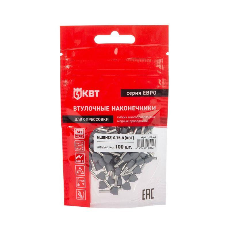 Наконечник штыревой втулочный изолированный НШВИ(2) 0.75-8 ЕВРО сер. КВТ 103244 КВТ