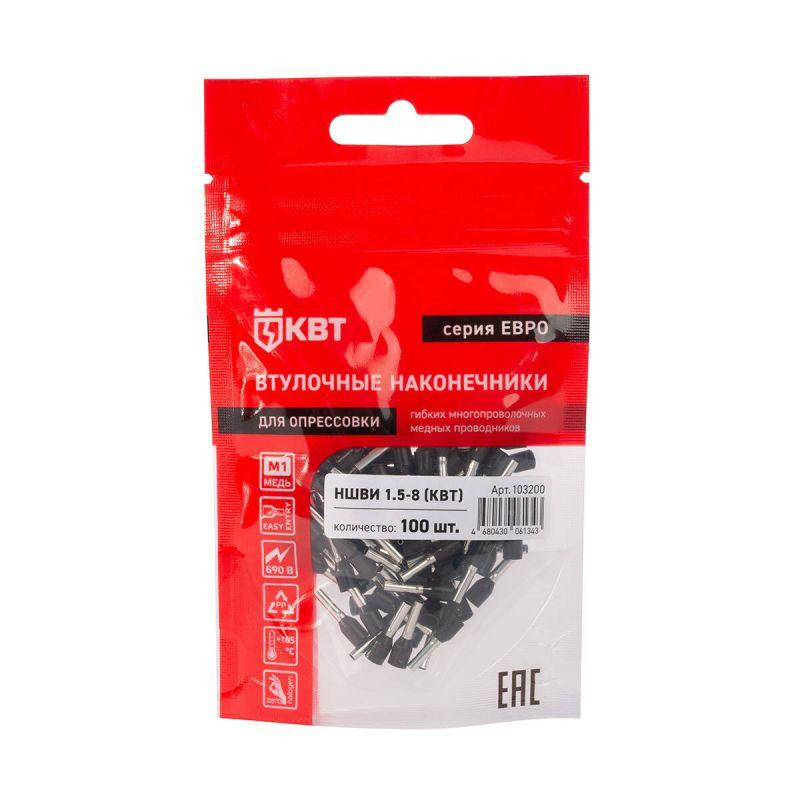 Наконечник штыревой втулочный изолированный НШВИ 1.5-8 ЕВРО черн. КВТ 103200 КВТ